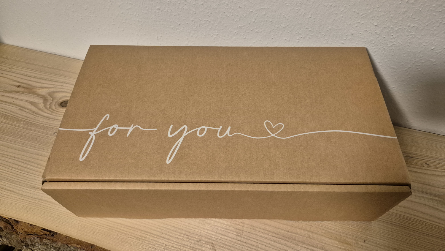 Motiv: „For You“ in weiß auf naturbraunem Karton
