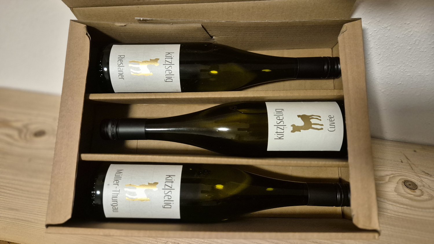 Lieferumfang: Karton mit Einlage zur sicheren Flaschenaufbewahrung
