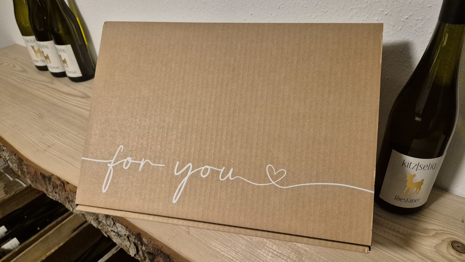 Der 3er Weinkarton quer „For You“ ist die perfekte Weinkarton 3er Geschenkverpackung, wenn du Weine stilvoll, sicher und hochwertig präsentieren oder versenden möchtest. Mit seinem eleganten „For You“-Motiv in Weiß auf naturbraunem Kraftpapier macht dieser Karton jedes Weinpräsent zu einem echten Hingucker.